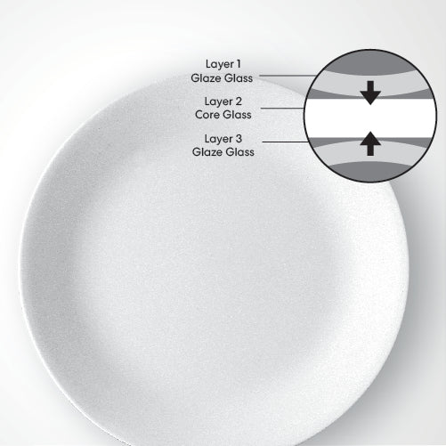 Crafted by the signature Vitrelle® glass, a unique sandwich construction that bonds three layers glass together. Resulting in lightweight dinnerware that is break & chip resistant.
